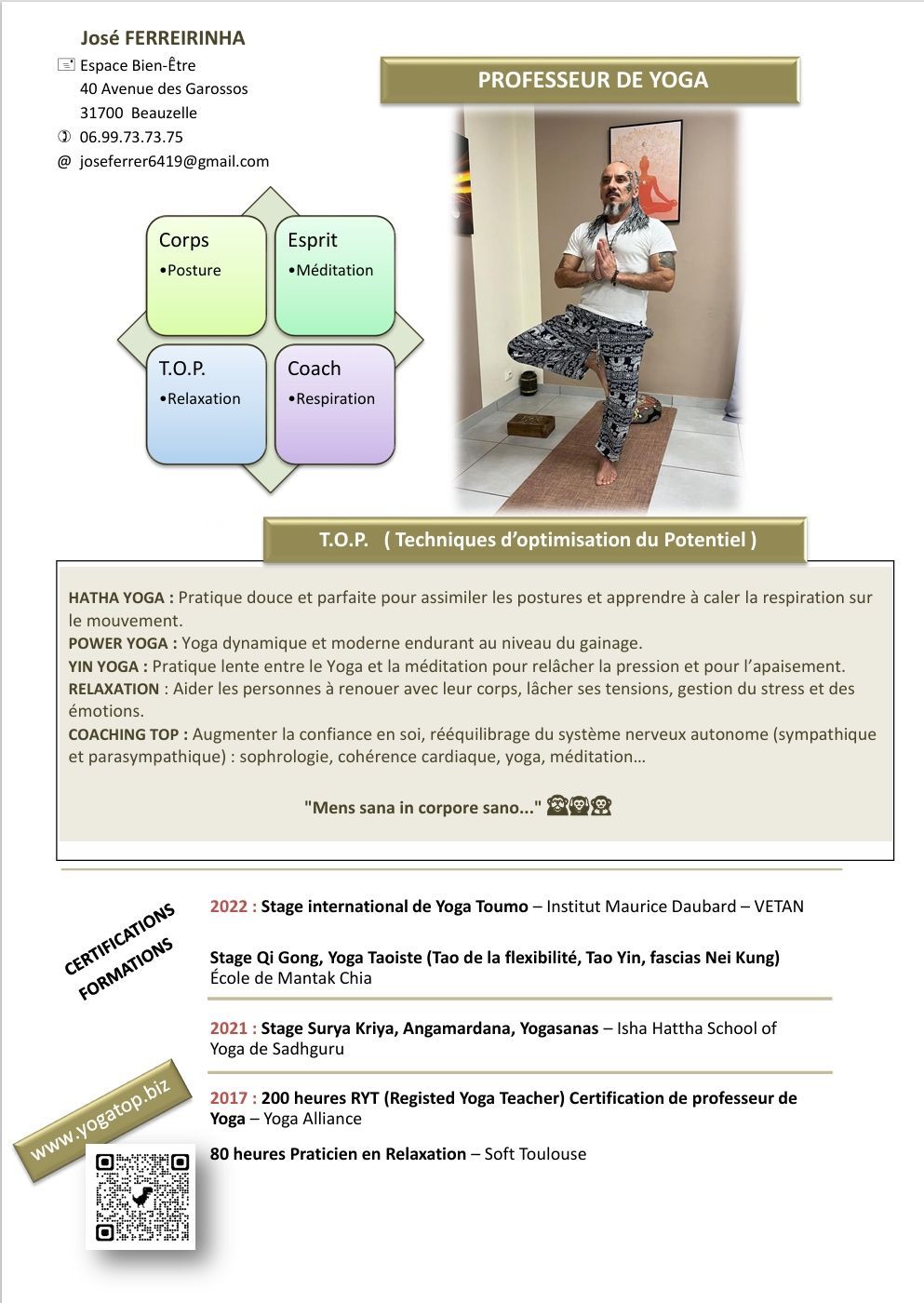 Praticien en Relaxation diplômé, et Professeur de Yoga certifié, je vous propose des cours privés,en groupes ou en entreprise.